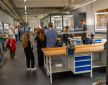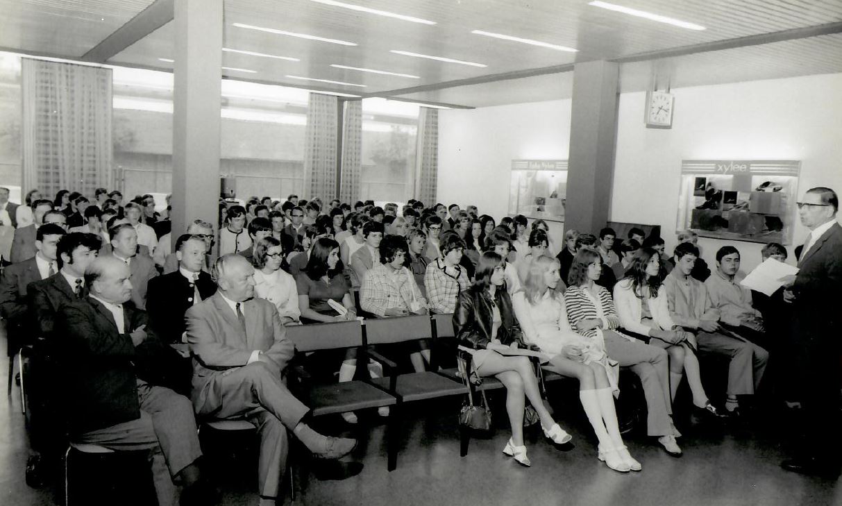 Nachwuchsrekrutierung - bis heute ein wichtiges Thema für den Standort. Bereits in den 70er Jahren gibt man Schulklassen die Möglichkeit, die Ausbildungseinrichtungen des Standorts zu besichtigen und informiert über das Ausbildungsplatzangebot (Foto links).