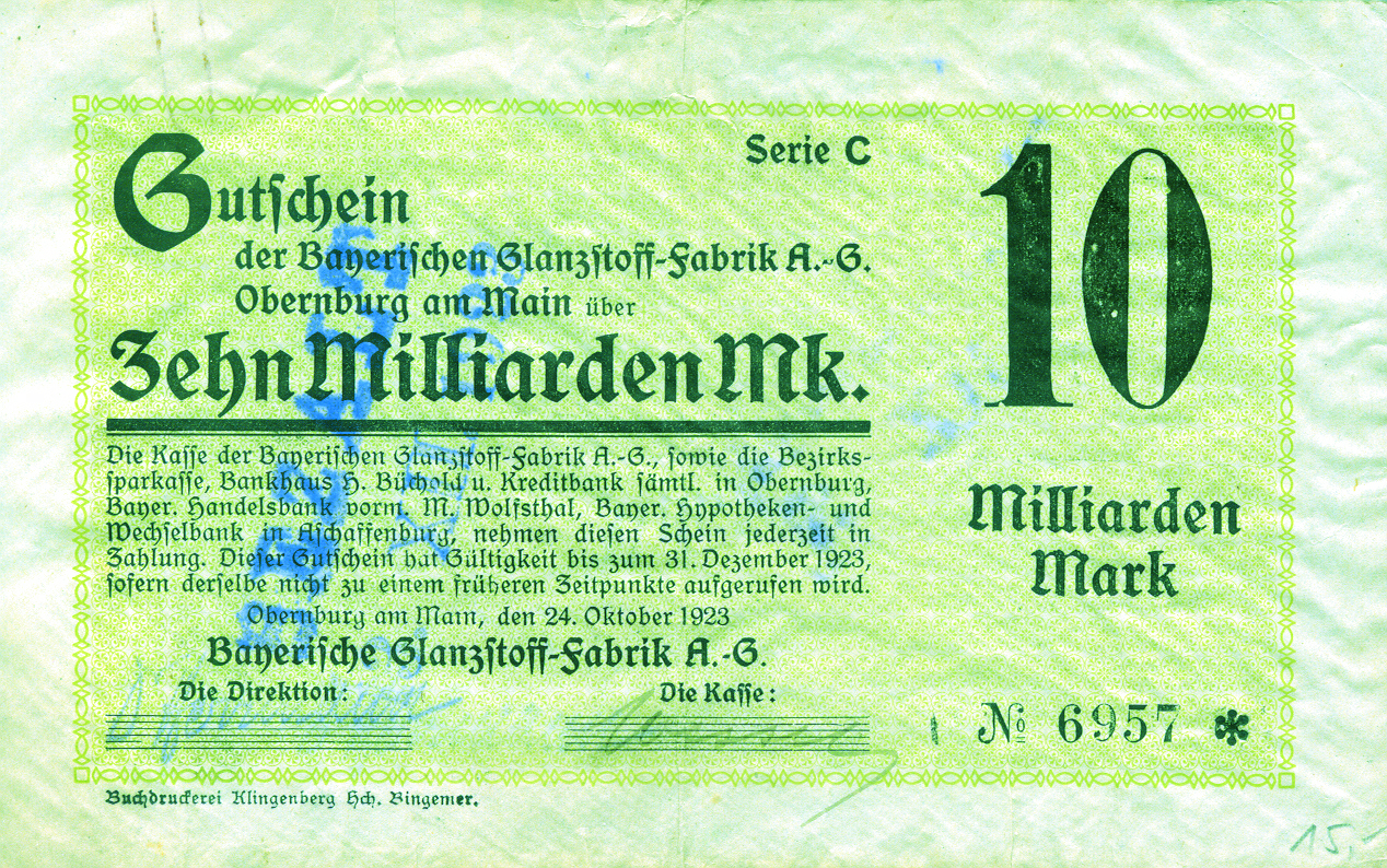 Erste Überlegungen zum Aufbau eines Chemiefaserwerks in der bayerischen Untermainregion gehen zurück auf die Jahre 1917 und 1918. Zur Schaffung von Arbeitsplätzen in der damals strukturschwachen Region kommen die königlich bayerische Staatsregierung und die Vereinigte Glanzstoff-Fabriken AG (VGF) mit Sitz in Wuppertal überein, ein neues Werk aufzubauen.