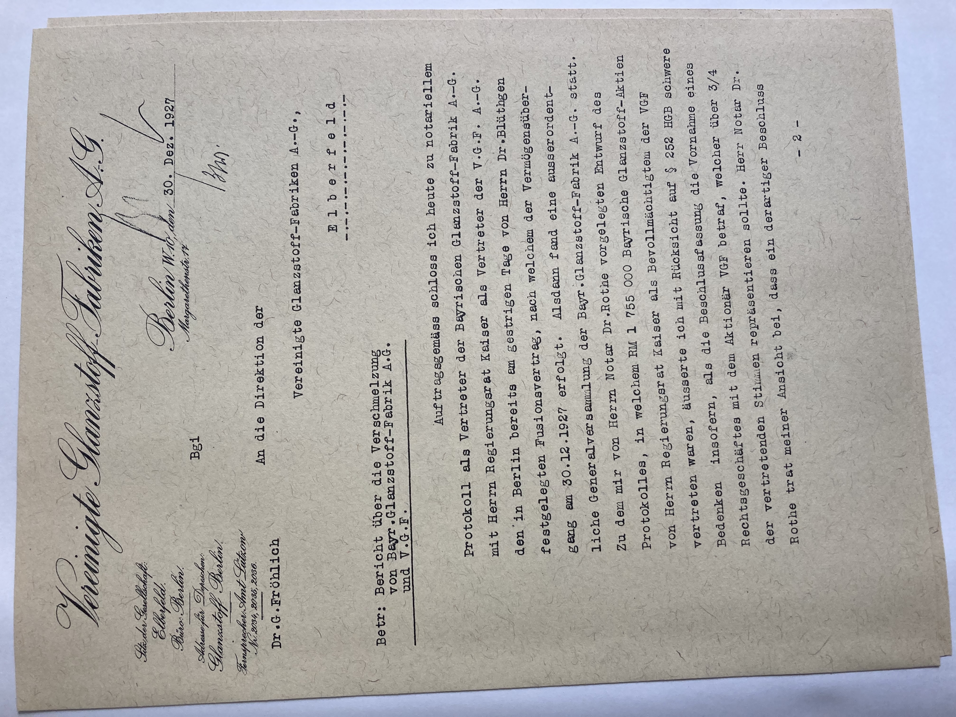 Im Jahr 1927 fusioniert die Bayerische Glanzstoff-Fabrik mit der VGF und gibt damit ihren regionalen Sonderstatus auf.