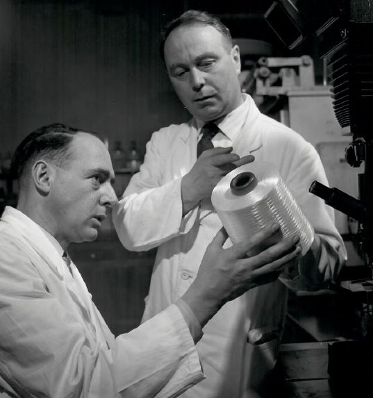 Ab 1954 beginnt der Aufbau eines neuen Großbetriebs zur Herstellung synthetischer Garne. Sie entwickeln sich in den Folgejahrzehnten bis heute zu den erfolgreichsten Chemiefasern überhaupt.