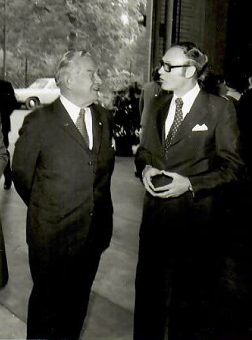 Foto rechts: Bayerns Ministerpräsident Dr. Alfons Goppel (links) und Werkleiter Dr. Günter Schmidt an der Feier zum 50-jährigen Standortjubiläum 1974.