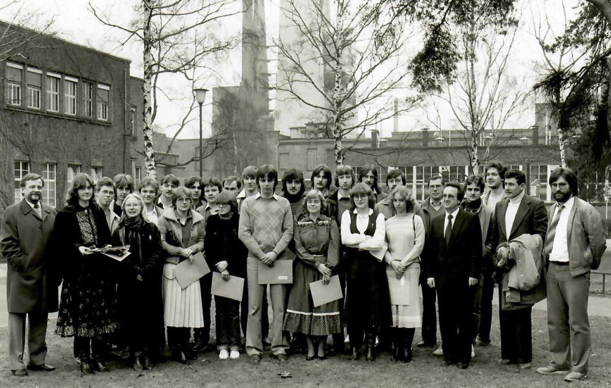 Erfolgreiche Auszubildende bei der Zeugnisübergabe (Foto rechts) bei der Freisprechungsfeier 1982.