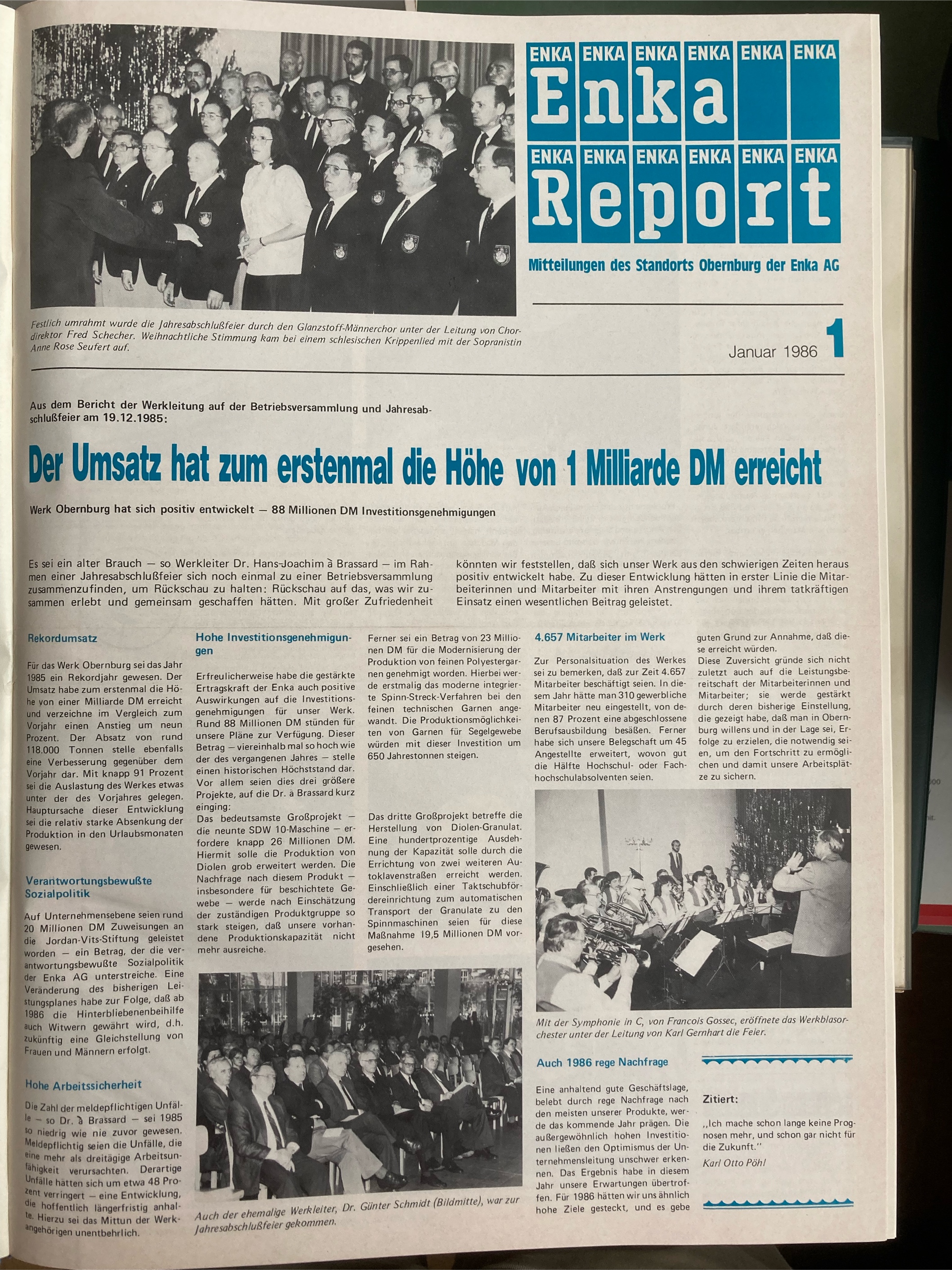 Waren die ersten Jahre der 80er wirtschaftlich noch verhalten, entwickelt sich die Mitte des Jahrzehnts zu einer Phase der Superlative. 1985 erreicht der Umsatz des Standorts erstmals in seiner Geschichte eine Milliarde DM, wie die Mitarbeiterzeitung ENKA-Report in ihrer ersten Ausgabe 1986 tituliert. Die Kapazitätsauslastung klettert auf über 96%. Rund 88 Mio. DM werden investiert in neue Produktionsanlagen, eine Stetigförderanlage zum Transport der Versandware, in die Verbesserung der Arbeitsergonomie für die Beschäftigten und in verschiedene Umweltmaßnahmen.