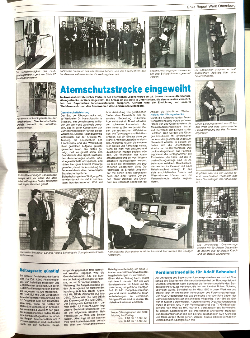 Am 21. Januar 1987 wird die neue Atemschutzübungsstrecke des Landkreises Miltenberg auf dem Standortgelände eingeweiht. Sie ist, inzwischen mehrfach modernisiert, bis heute unverzichtbare Übungseinrichtung für die Mitglieder der Freiwilligen Feuerwehren des Landkreises und der ICO-Werkfeuerwehr. Sie bildet damit einen weiteren Baustein der erfolgreichen Zusammenarbeit öffentlicher Stellen und des Standorts bei der gemeinsamen Aufgabenbewältigung.