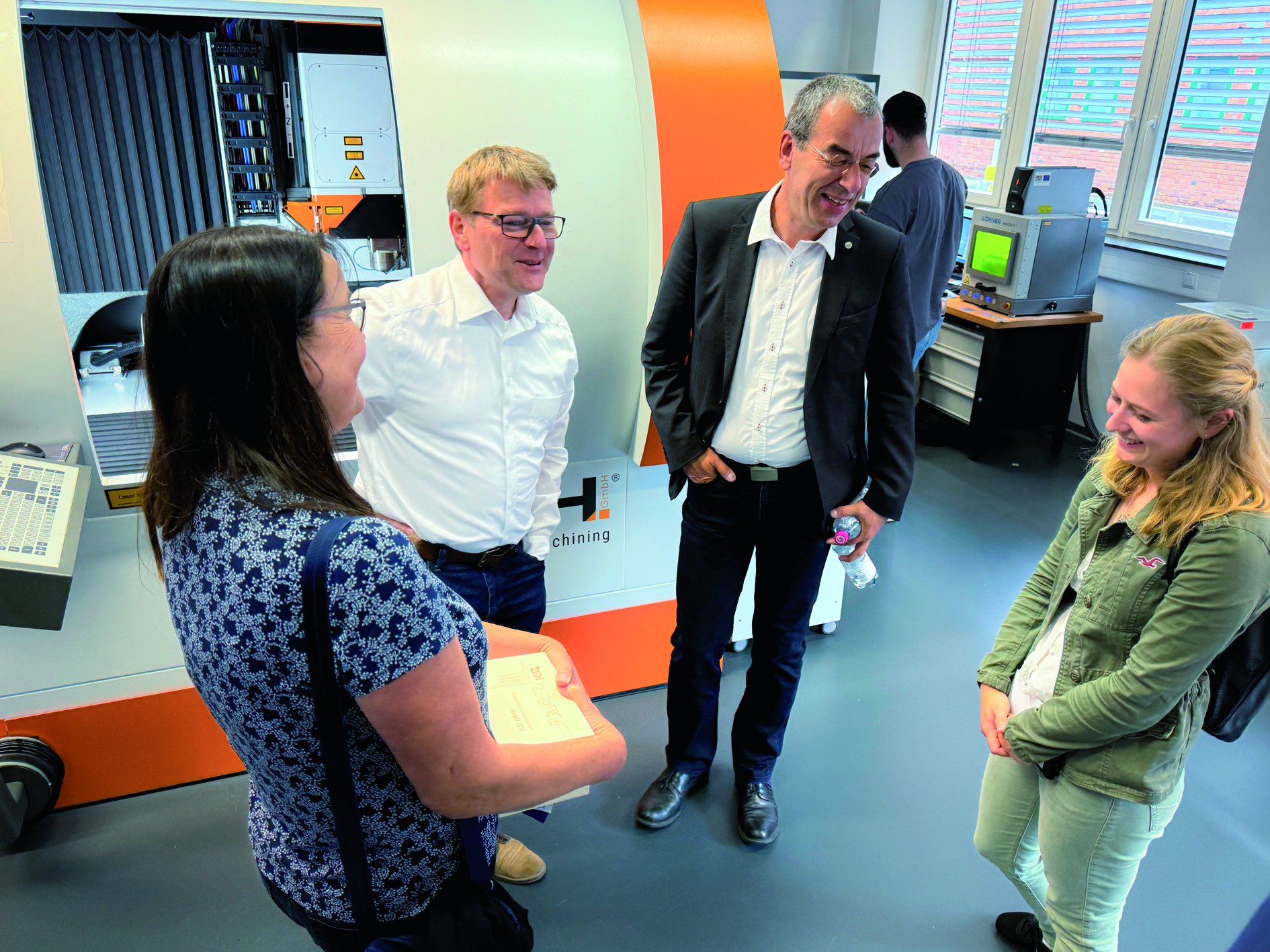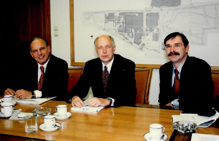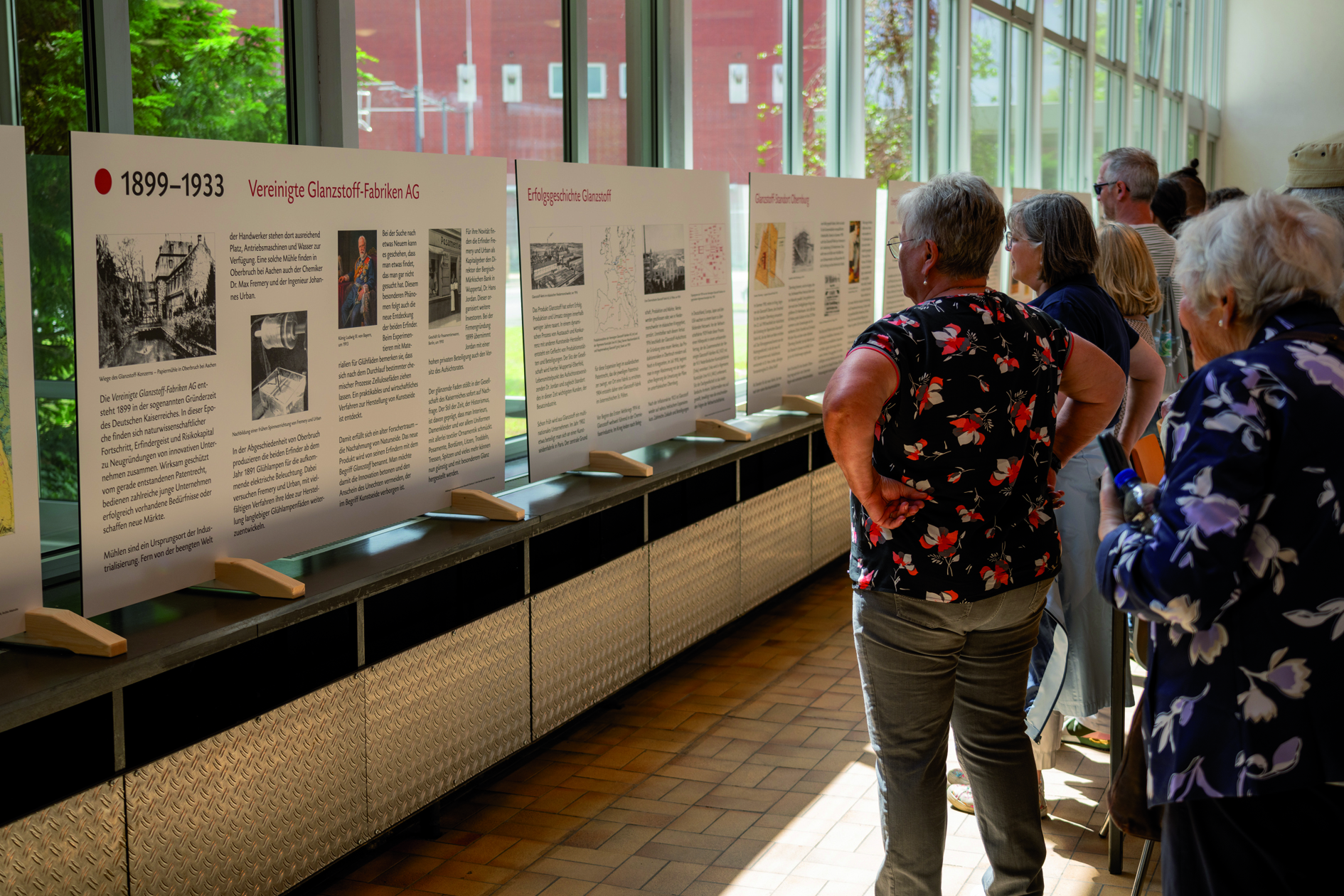 Foto links: Auch die Politiker des Umlandes finden die neuen Strukturen des ICO interessant. Kennt man den Standort doch über viele Jahrzehnte nur als Werk. Bis heute heißt das ICO im Volksmund für viele immer noch "die Glanzstoff", allen grundlegenden Veränderungen zum Trotz.