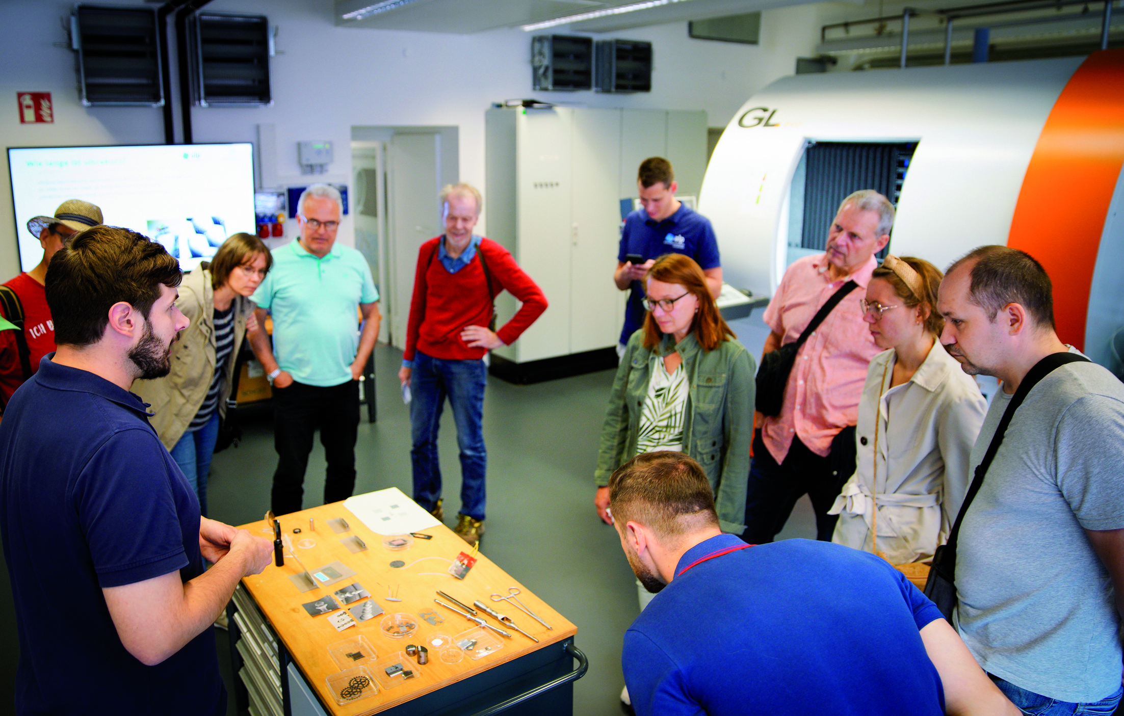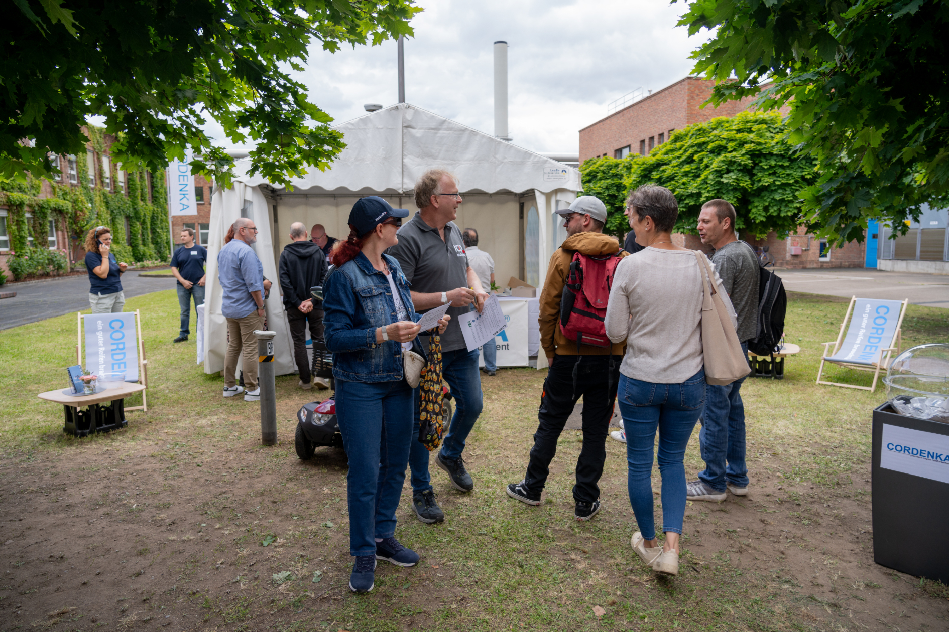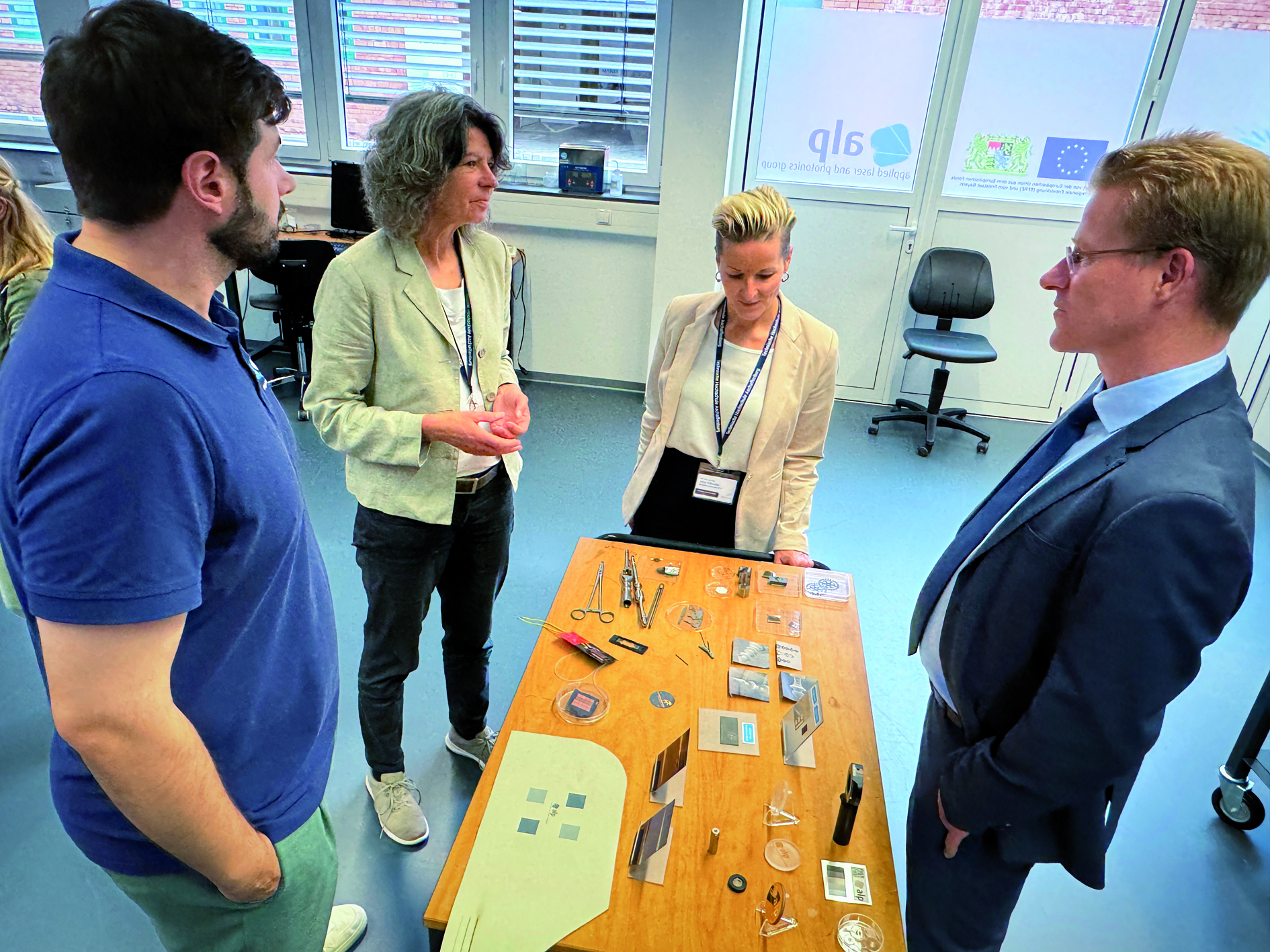 Foto links: Auch die Politiker des Umlandes finden die neuen Strukturen des ICO interessant. Kennt man den Standort doch über viele Jahrzehnte nur als Werk. Bis heute heißt das ICO im Volksmund für viele immer noch "die Glanzstoff", allen grundlegenden Veränderungen zum Trotz.