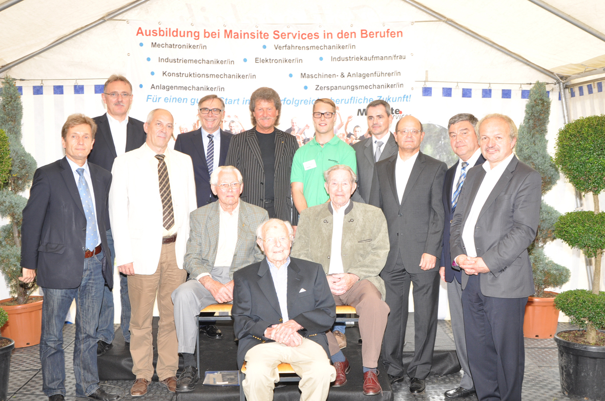 Foto rechts: Im Jahr 2012 feiert die standorteigene von Mainsite betriebene Ausbildung ihr 75-jähriges Bestehen. Mit dabei auch mehrere Azubis, die 1937 ihre Ausbildung - damals noch bei der "Glanzstoff" - begonnen hatten.