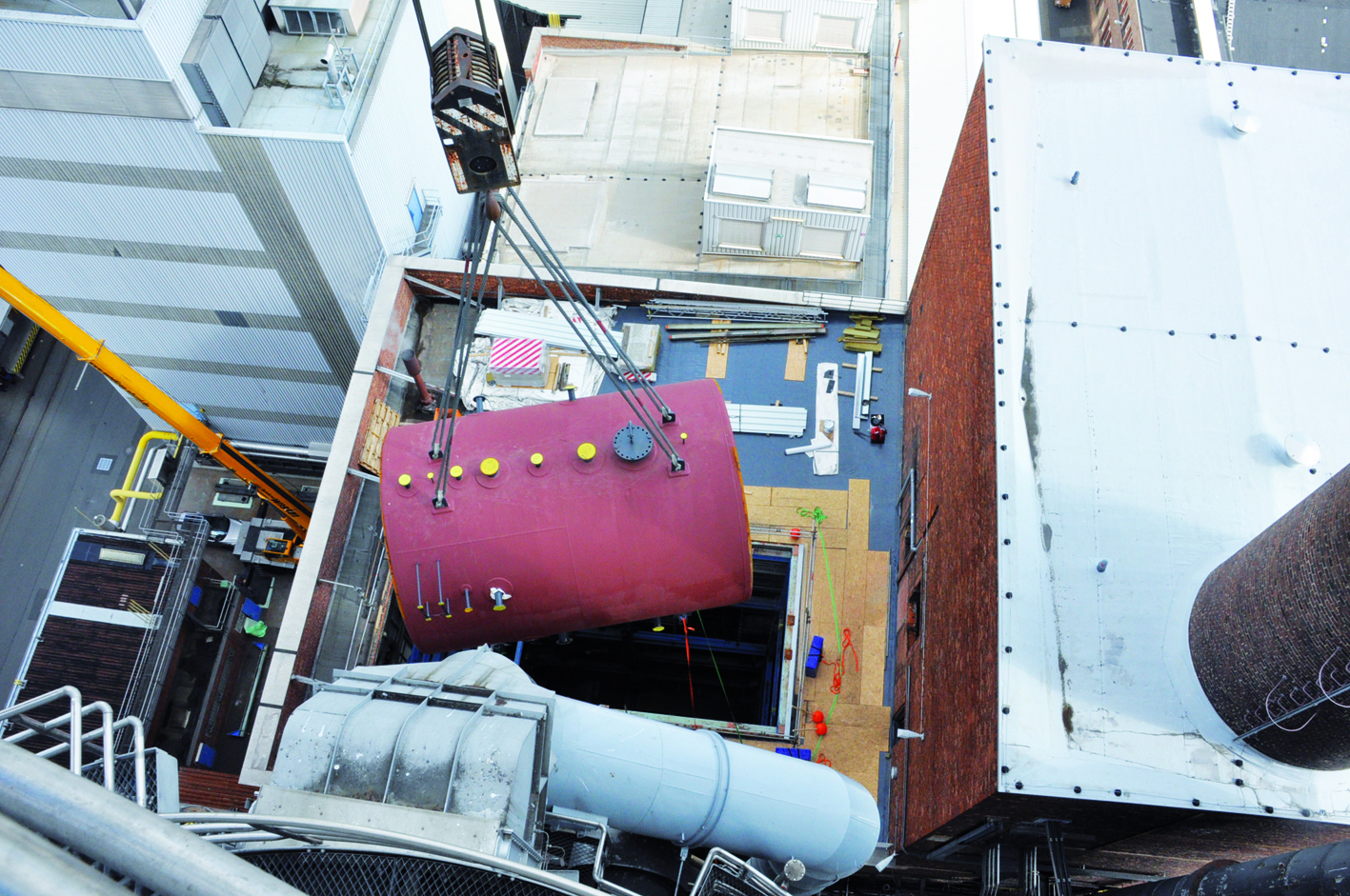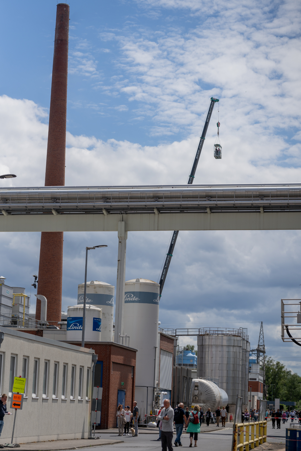 Zeitgleich mit dem Logistikneubau startet das Investitionsprojekt "MODICO". Es umfasst grundlegende Modernisierungsarbeiten an der standorteigenen Energieversorgung, um die Energieversorgung noch stabiler und zugleich umweltfreundlicher zu gestalten. Spektakulär ist das Einheben eines neuen Kessels mittels Autokran zwischen den Turmkesseln hindurch über das Dach des Kraftwerksgebäudes hinweg (Foto links).